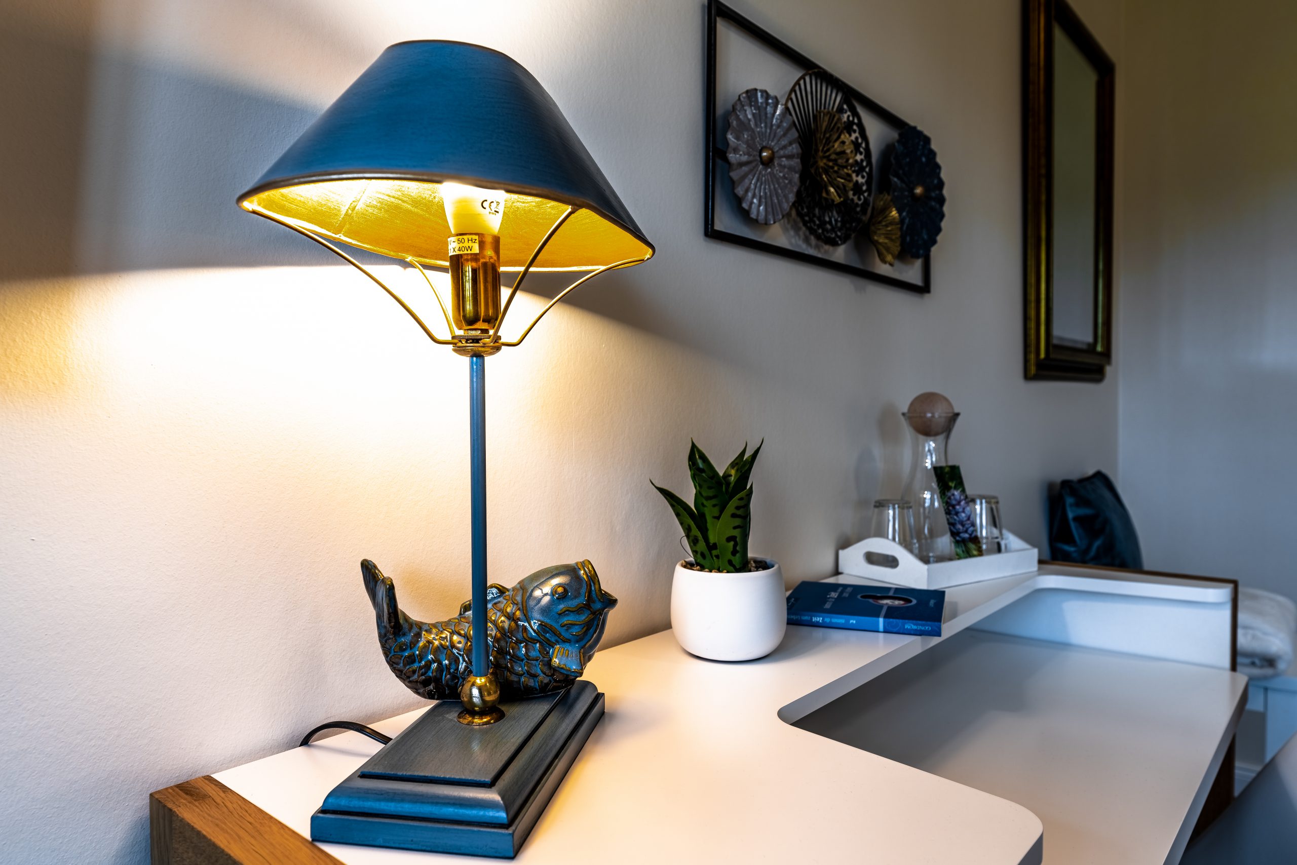Ebenerdig und ruhig mit Blick in den schönen Garten gelegen empfängt dieses Zimmer seine Bewohner mit maritim-eleganter Gemütlichkeit. Im Zimmer ist auch eine freundliche Fellnase willkommen, für die dann neben einer Hundedecke auch ein Futter- und Wassernapf bereitsteht