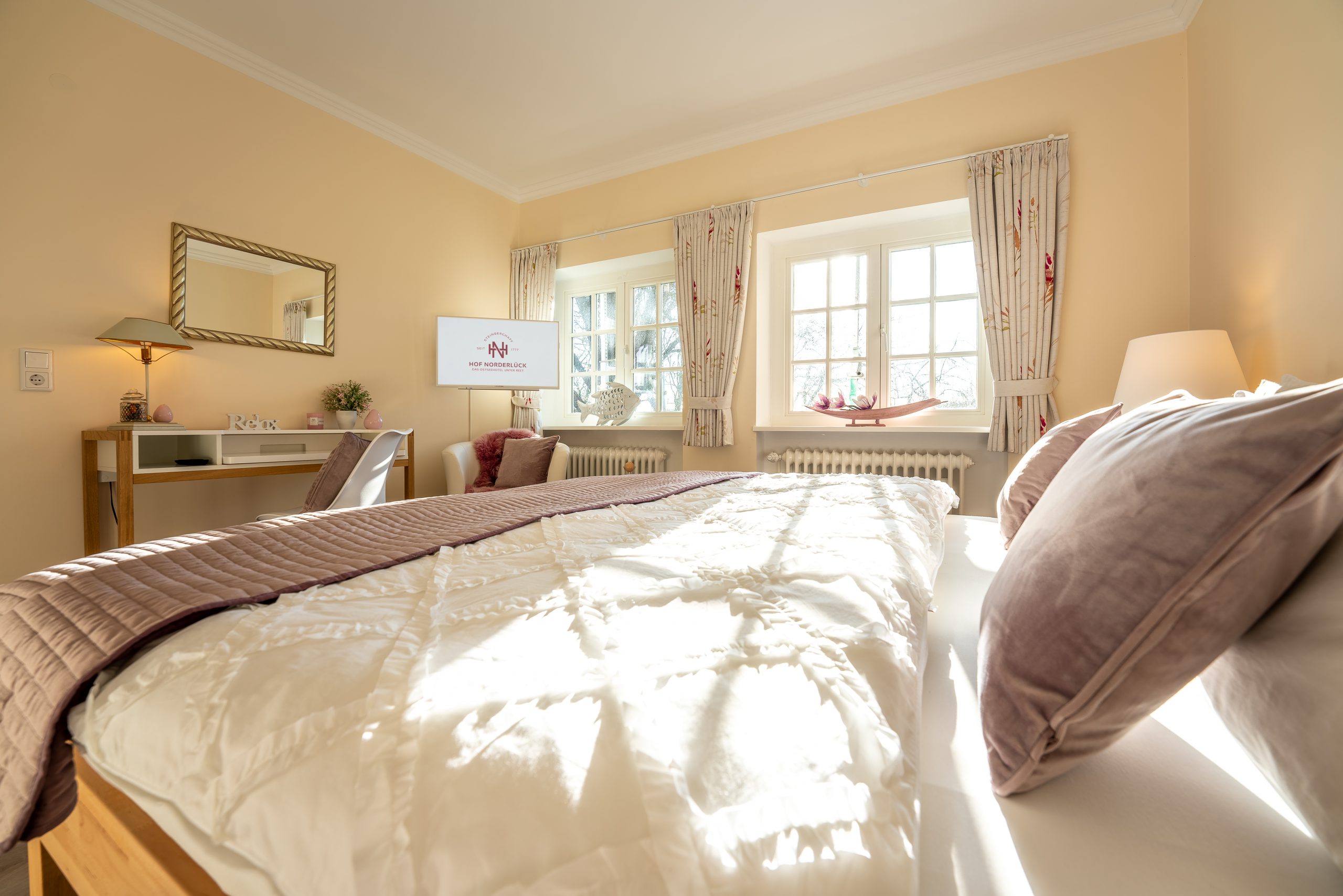 Wer es gern ein wenig romantisch mag, fühlt sich in diesem ebenerdig gelegenen hellen Gartenzimmer mit Tageslichtbad sofort wohl: Dezente Eleganz gepaart mit praktischer Einrichtung – und genügend Platz, so dass auch eine fellnasige Begleitung mit den dazugehörigen Accessoires (Futter- und Wassernapf sowie ein Hundebett) problemlos mit einziehen kann.
